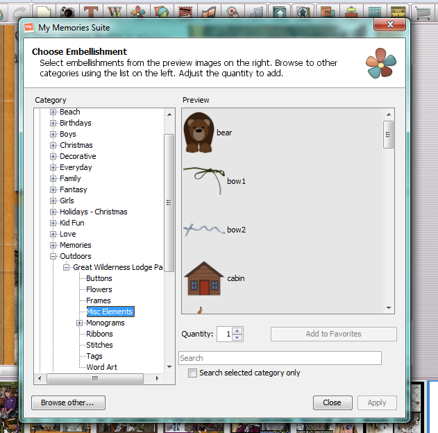 Again, I chose my "Outdoors" Category and then into "Misc Elements"